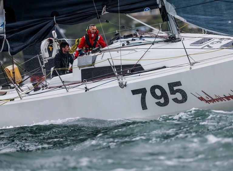 Since 2021, Calanach has specialized in doublehanded offshore racing, sailing with Nick Martin on the Sunfast 3600 "Diablo." They became regular contenders in UK offshore races, including the Fastnet, Round Britain and Ireland, and much more. In 2023, during their second Fastnet race together, they experienced a dismasting on the first night. With broken sections of aluminium threatening to further damage the boat, they managed to recover everything and return safely to port.